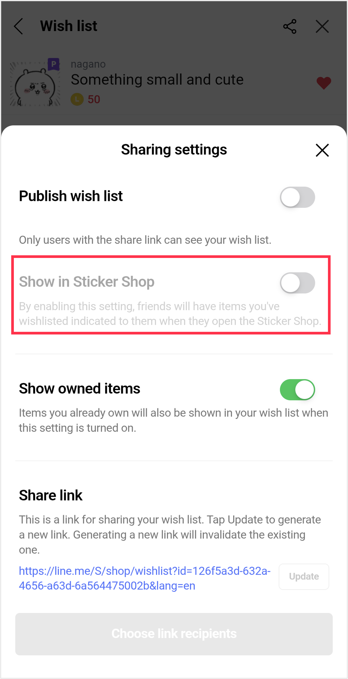 - You can now generate a new link for sharing your wish list by tapping Update for the Share link section.