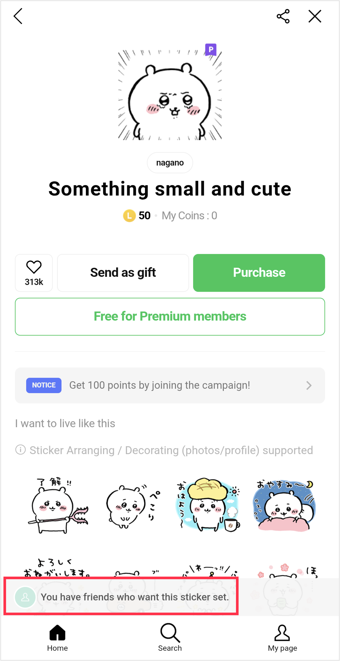 - You can go to the sticker purchase screen by tapping a sticker sent in a chat.
